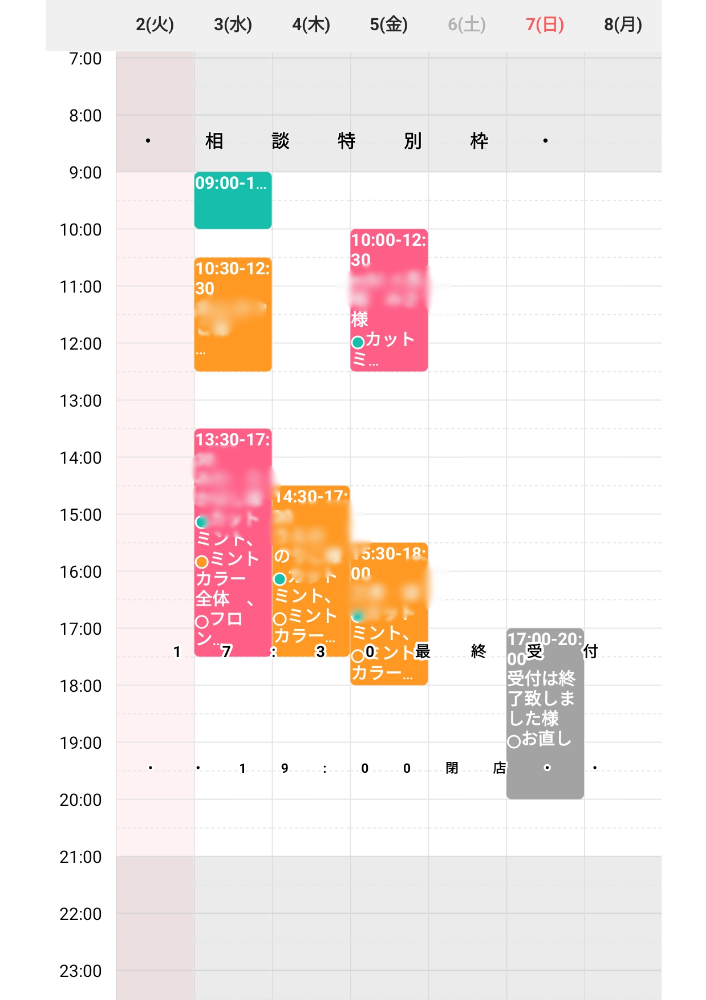 カットカラーは、ご新規様は2時間30分 既存のお客様は2時間の余裕をみて頂けるようお願いします。